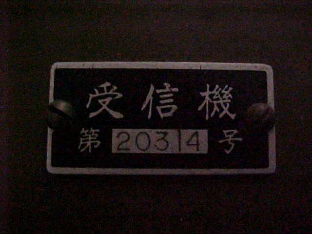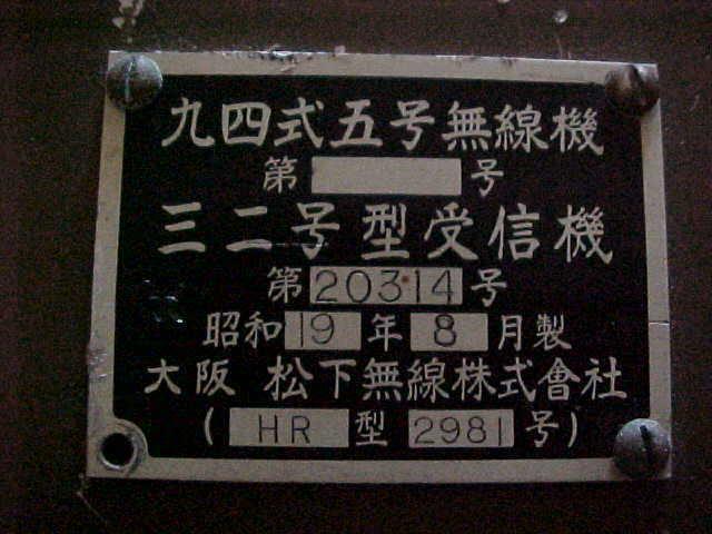 | 九四式五号 = Type 94-5 無線機 = wireless, radio, (possibly transceiver) 第, 号 = serial number 三二号型 = No. 32 昭和19年8月製 = mfg. August 1944 大阪 = Osaka |
